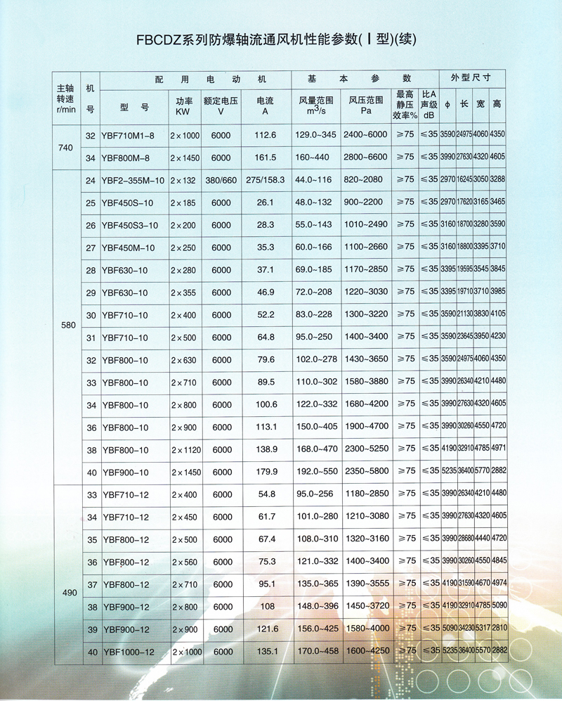FBCDZ对旋系列风机采用西北工业大学航空动力和热力工程系研制的弯掠组合正交型叶片,该风机适用于各类大、中、小型矿井地表做抽出式风机。各型号风机设有不停机加油装置及轴承测温装置,可有效的解决轴承连续工作温度升高后引起的停机故障,风机采用叶轮与电机轴直联方式,可减少基建工作,克服山体滑坡造成的影响。叶片安装角可调,区域宽广,可通过电控装置直接反转反风。FBCDZ对旋系列两级叶轮互为导叶的工作方式,减少内耗,提高了运行效率。叶片为可调式,采用外调方式代替传统的螺栓螺母固定式,不需要拆开风机,风量调节更方便。