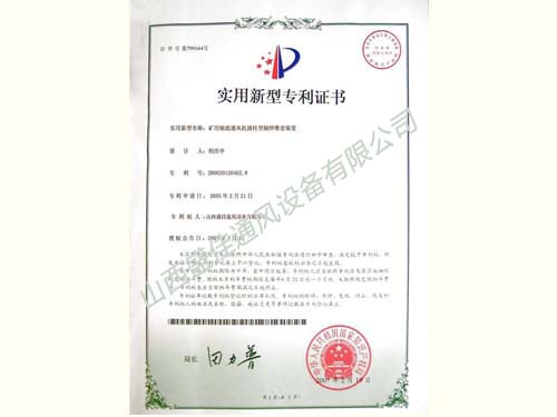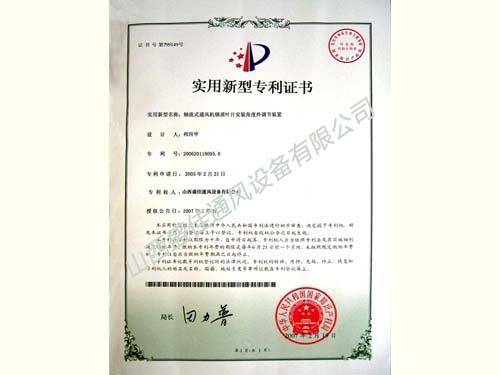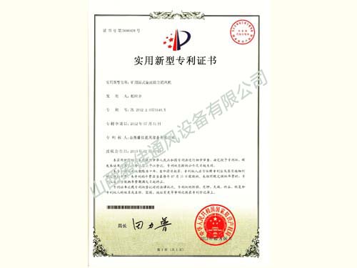 除尘风机专利证书(盛佳)